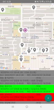 앱을 사용하는 방법은 실행한다. 화면에 표시된 마크를 클릭한다. 리스트가 나오면 약국 이름을 클릭하여 위치를 하고 찾아간다. 끝.