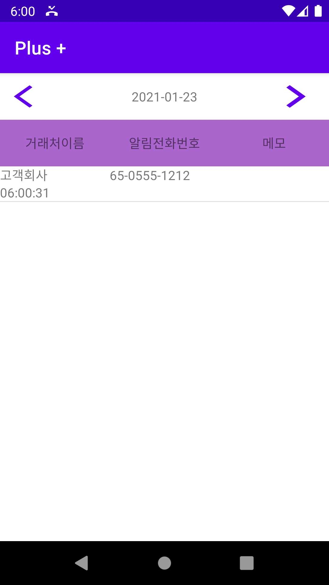 거래처전화번호는 전화가 걸려오면 등록된 번호가 있을 때 메모할 수 있는 창을 실행할 수 있도록 구현 됩니다.