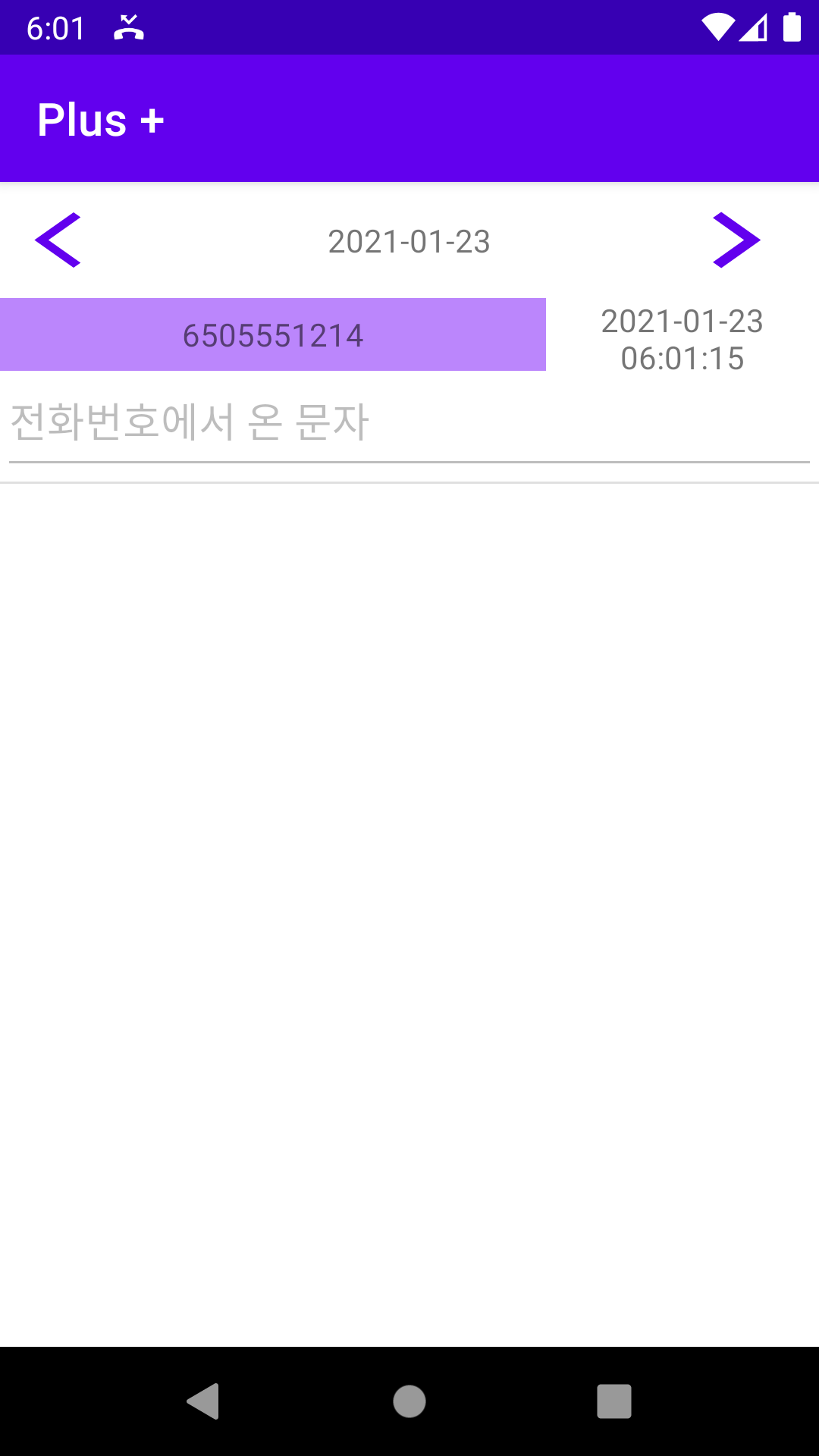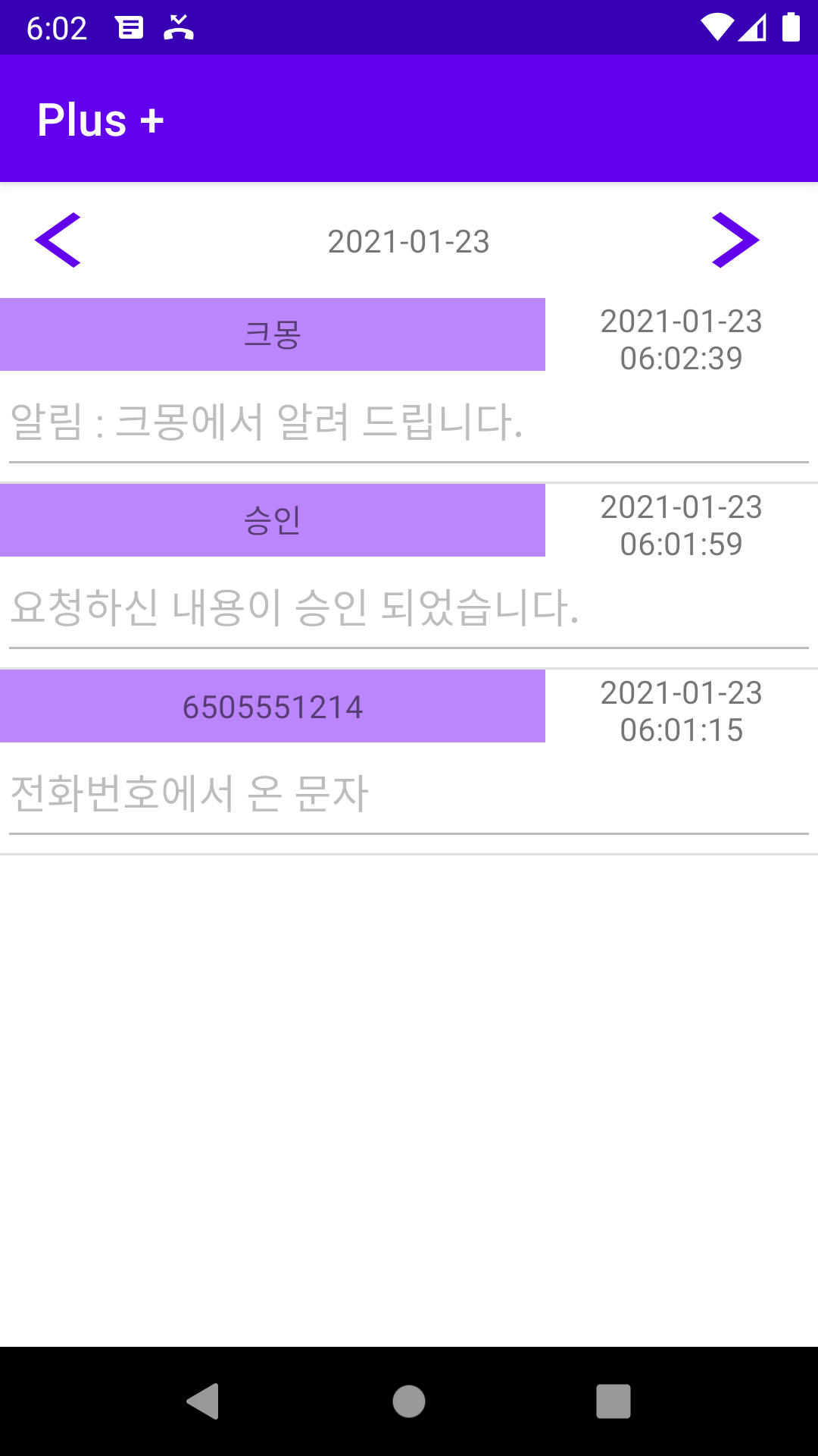 알림문자 에서 수신된 문장 목록을 보여 줍니다.
