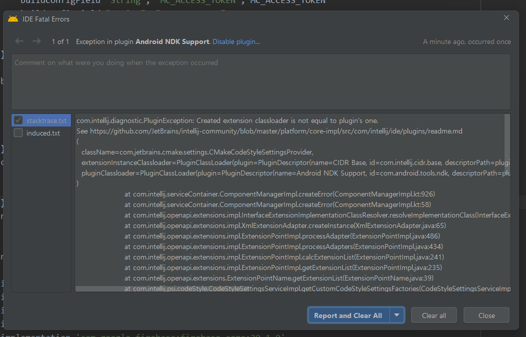 일단 아쉬운 데로 Disable plugin 을 클릭해서 NDK 사용을 하지 않는 것으로 했더니 정리가 된 것 같기는 하다. 아직 NDK사용이 뭔지 모르는 나에게 그만...