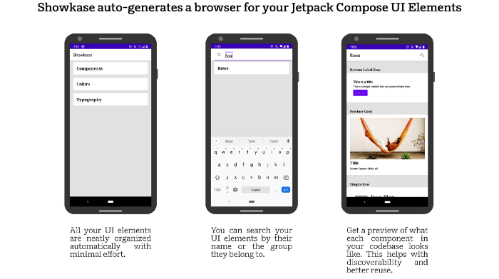이 라이브러리는 Airbnb에서 제공합니다. 롯데의 유명한 애니메이션 라이브러리도 만든 사람입니다. 이 라이브러리는 Jetpack Compose UI 요소를 구성, 검색, 검색 및 시각화하는 데 도움이 되는 주석 프로세서를 기반으로 합니다. 구성 요소, 색상 및 타이포그래피를 빠르게 찾을 수 있도록 최소한의 설정으로 UI를 제공합니다. 또한 어두운 모드, 오른쪽에서 왼쪽 레이아웃, 크기가 조정된 글꼴 등과 같은 일반적인 시나리오에서 구성 요소를 렌더링 합니다.