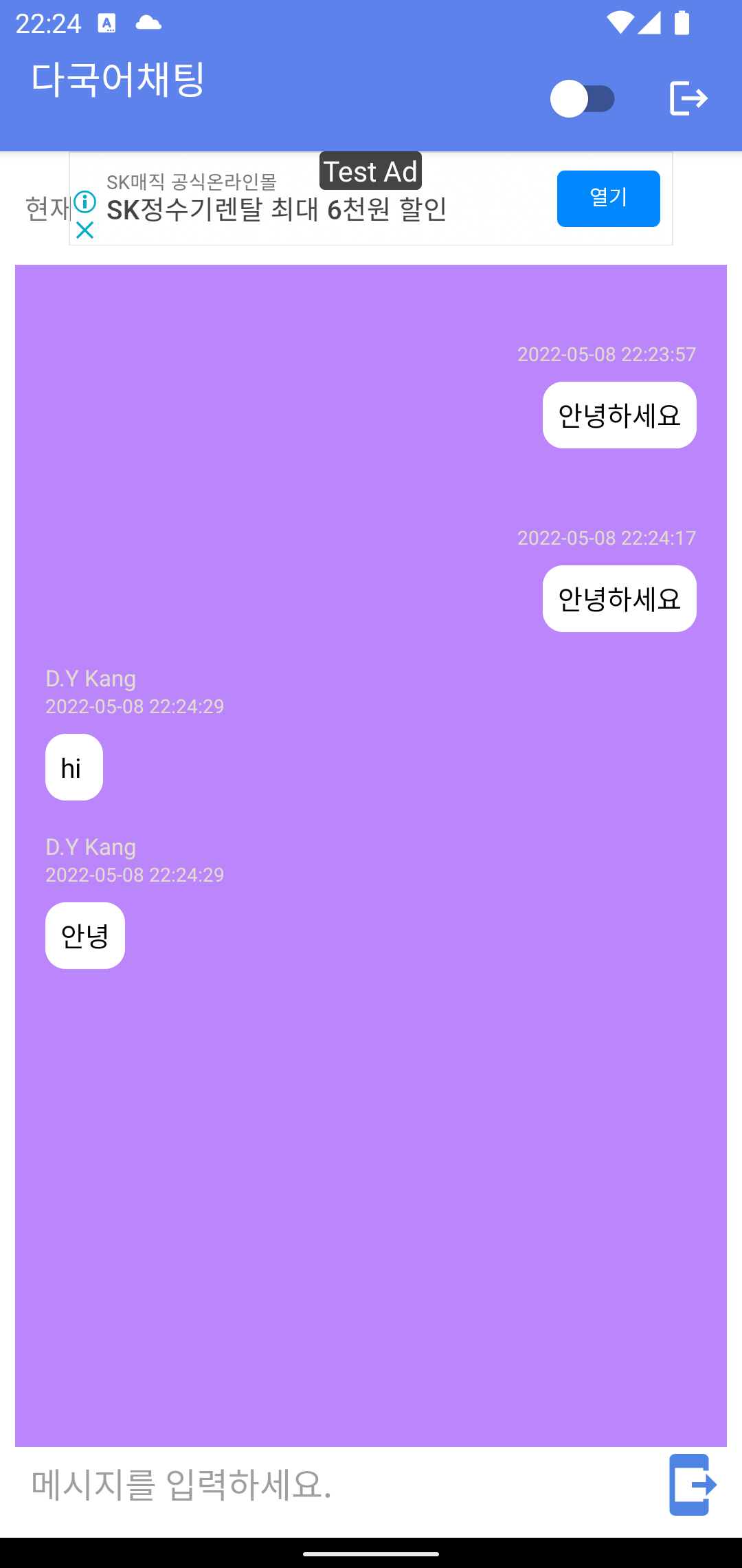 | 안드로이드 앱 만들기 : 채팅창 만들어 보기 (Jetpack Compose 에 AndroidView Binding) (0) | 2022.05.03 |