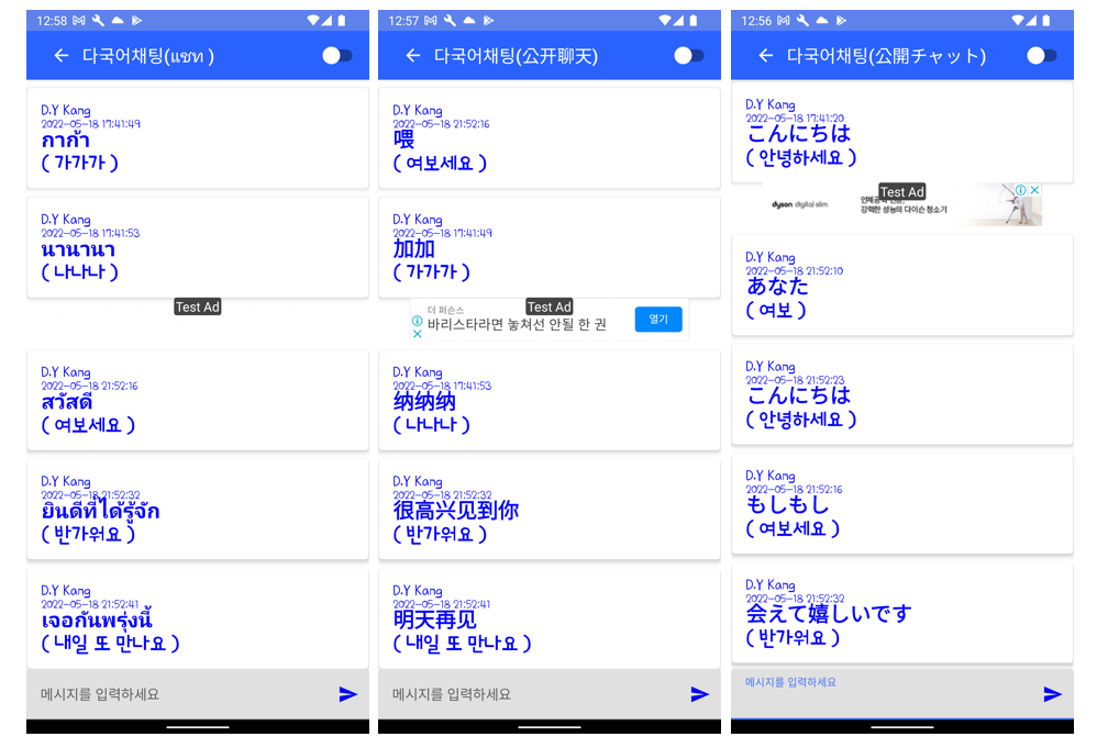 이 앱은 말 그대로 여러 나라 사람들이 자기 언어를 이용해서 채팅을 할 수 있는 기능을 지원합니다.