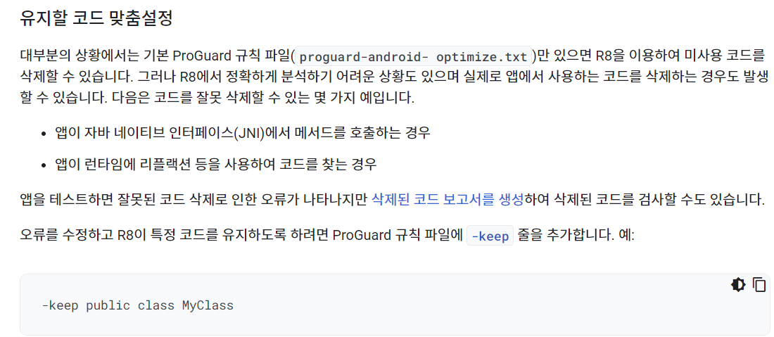 https://developer.android.com/studio/build/shrink-code.html?hl=ko#kts