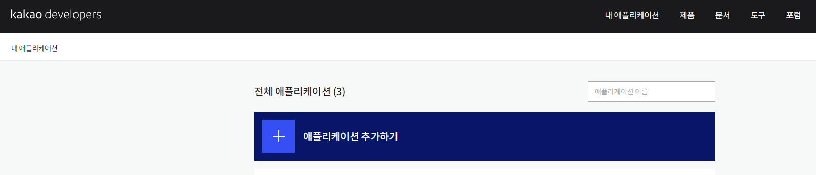 애플리케이션 추가하기를 클릭해서 새로운 앱을 만들고 아래 그림 처럼 나와 있는 앱키를 사용한다.