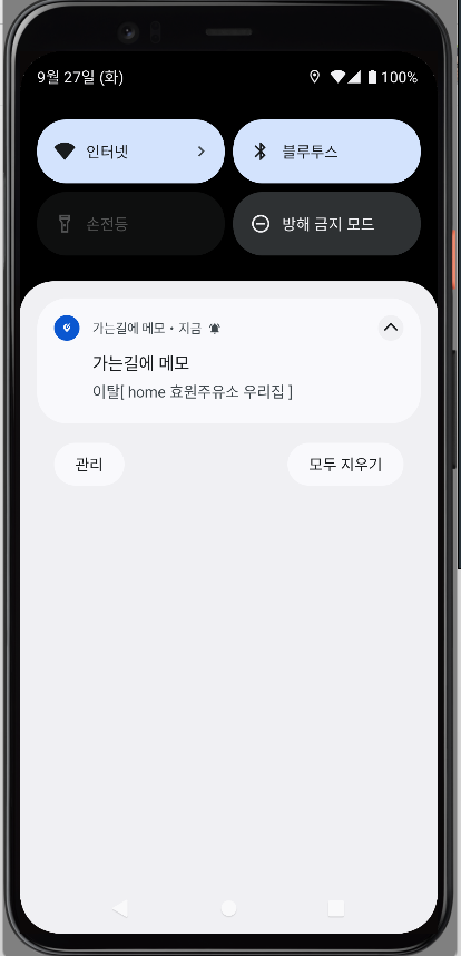 위에 기술된 전체 소스의 내용과 같이 트리거 되는 위치에 대한 정보를 취해서 그곳에 대한 알림을 전달하는 방식으로 내가 지정한 위치에 도달하였을 때 명칭을 표시하는 방법을 구현해 보게 됩니다.