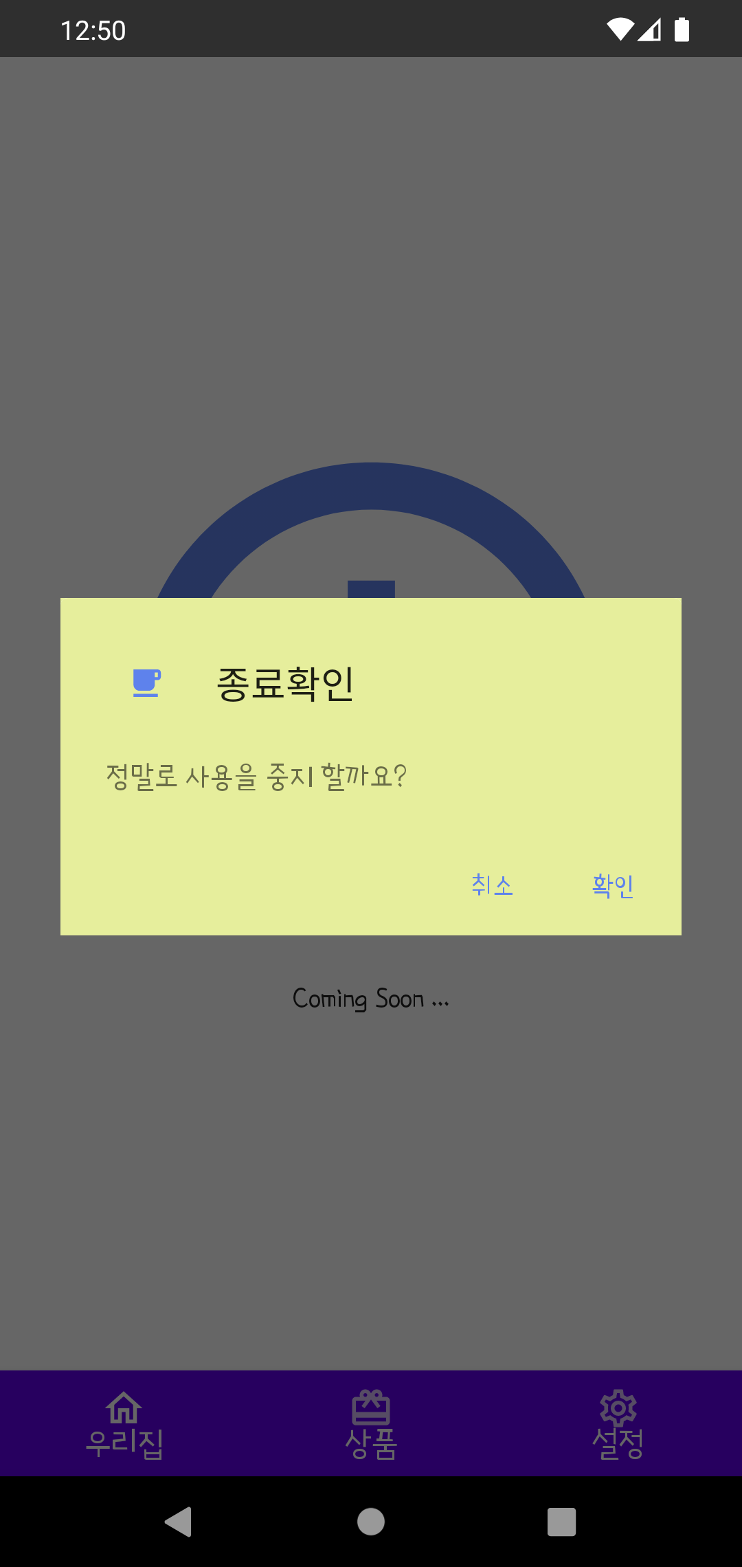 이렇게 dialog 구현을 해 보았습니다. 더 쉬운 방법을 알게 되면 다시 구현해 보겠습니다.