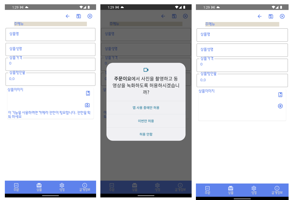 이렇게 하면 앱이 구동중에 권한이 필요한 경우 메시지를 보여 주고 해당 권한을 획득한 후 필요한 동작을 구현해 볼 수 있습니다.