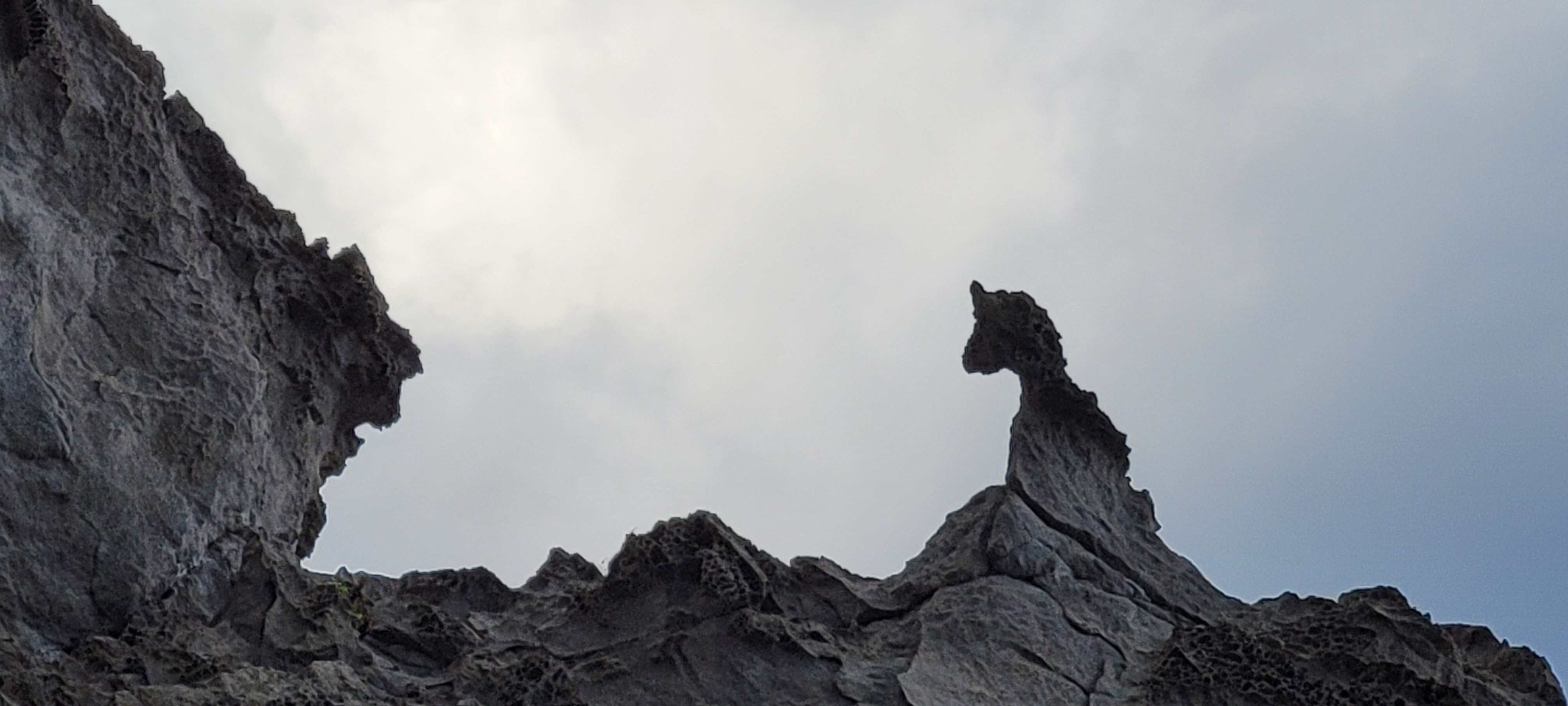 길을 걷다 보니 바위들 위에 특이하게 보이는 모양이 보여 줌으로 찍어 봤습니다. 지금 보니 해마(?)처럼 보이기도 합니다. 바라 아래 있는 바위 사이 도로 근처에서 보았습니다.