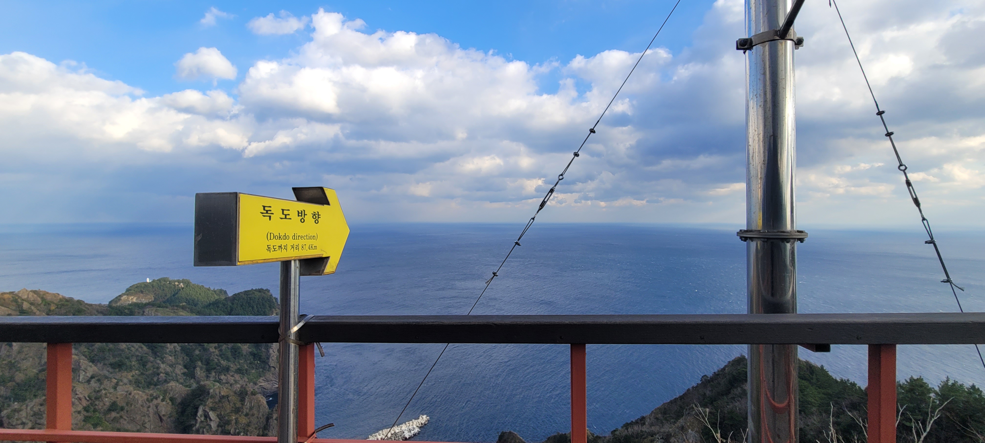마구마구 가고 싶은 독도인데 전망대에서 87.4km 떨어진 위치에 있다고 표시가 있습니다. 맑은 날은 욱 안으로도 볼 수 있다는 데 이날은 날이 추워 볼 수 없는 날씨였습니다.