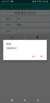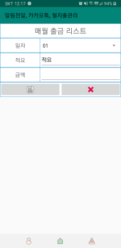 리스트가 나오고 아래 “+” 버튼을 클릭 하면 매월 출금 리스트를 추가할 수 있습니다.