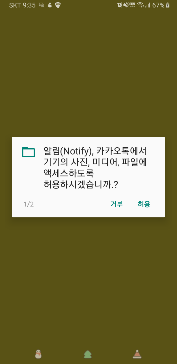 3. 알림 접근 권한이 허용 되면, 앱이 실행 되면서 필요한 권한의 허용을 요청 합니다.
