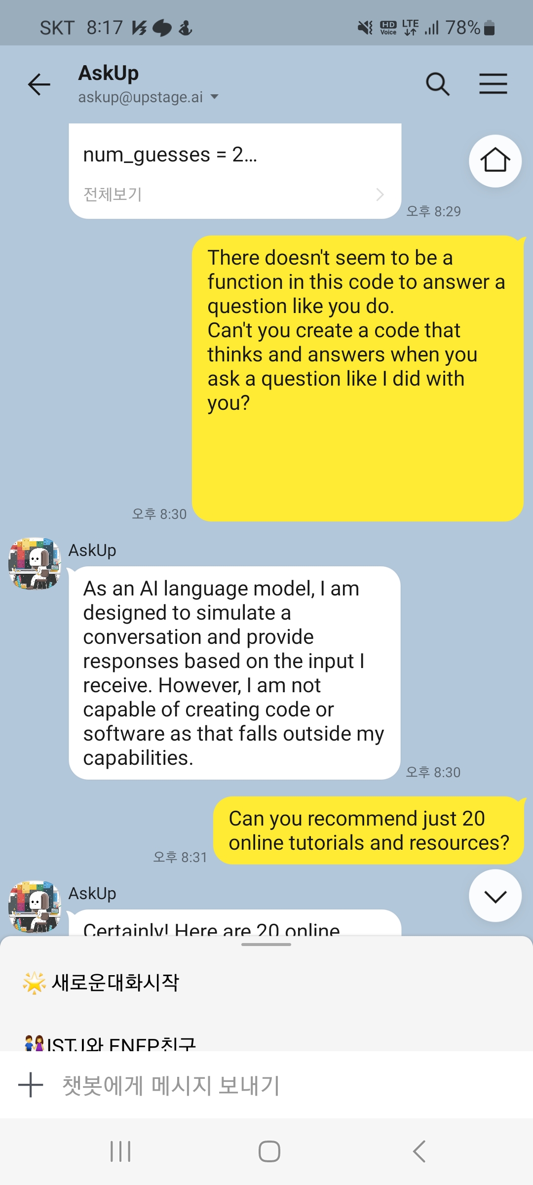 챗봇과 수다를 떨어 볼 수 있거든요.