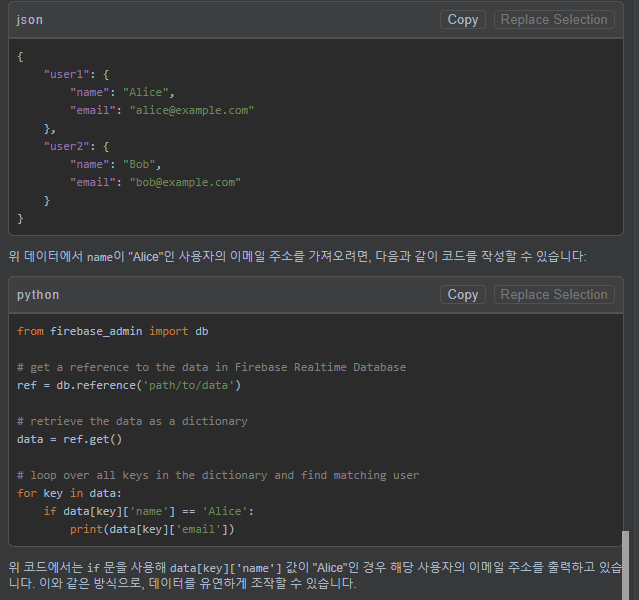 참고로 realtime database 의 규칙 설정에 위 그림과 같이 설정을 하고 있기 때문에 $uid을 확인하지 못하면 실제 데이터를 읽어 올 수 없습니다. 그래서 코드에는