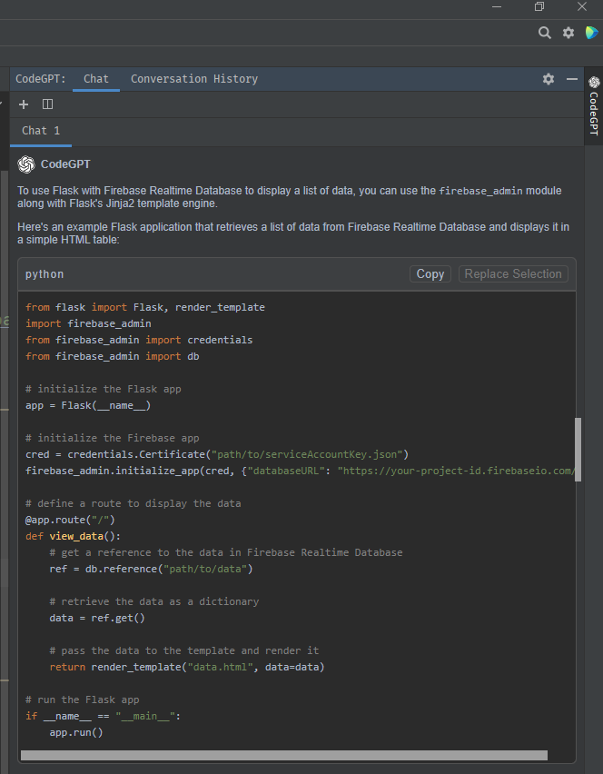 PyCharm 2021.2 (Community Edition)에서 codeGPT을 활용해 코드 작성의 도움을 받아 볼 수 있습니다.