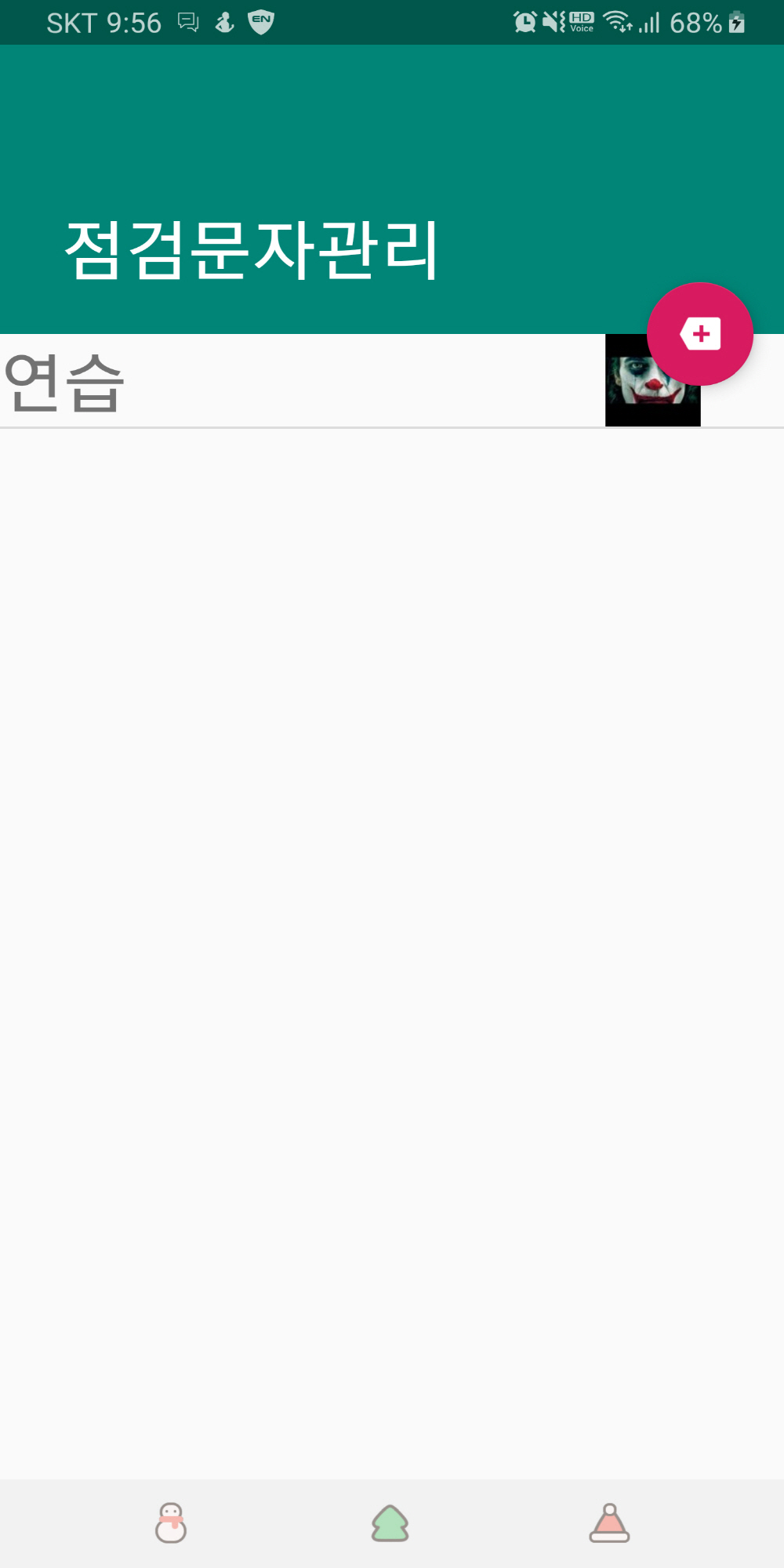 7. 점검문자열 메뉴를 들어가서 + 버튼을 클릭하여 점검문자열을 등록 합니다. 이 때 카카오톡 사용 여부를 체크 하여 카카오톡 친구 목록이 나오면 점검문자열에서 점검된 알림을 전달할 친구를 선택 합니다. (점검문자열을 등록할 때, 전달할 카카오톡 친구을 선택하지 않으면 해당 문자열의 내용은 본인의 카톡 메모로 전달 됩니다. 이 경우도 선택사항에서 카카오톡 전송을 선택한 경우만 적용 됩니다.) 친구를 추가하면 처음 1회 앱에 대한 사용 승인을 해야 이앱에서 친구 목록으로 조회가 됩니다. 알림을 공유할 친구들 모두가 이앱을 설치하고 사용승인이 될 수 있게 해 주세요.