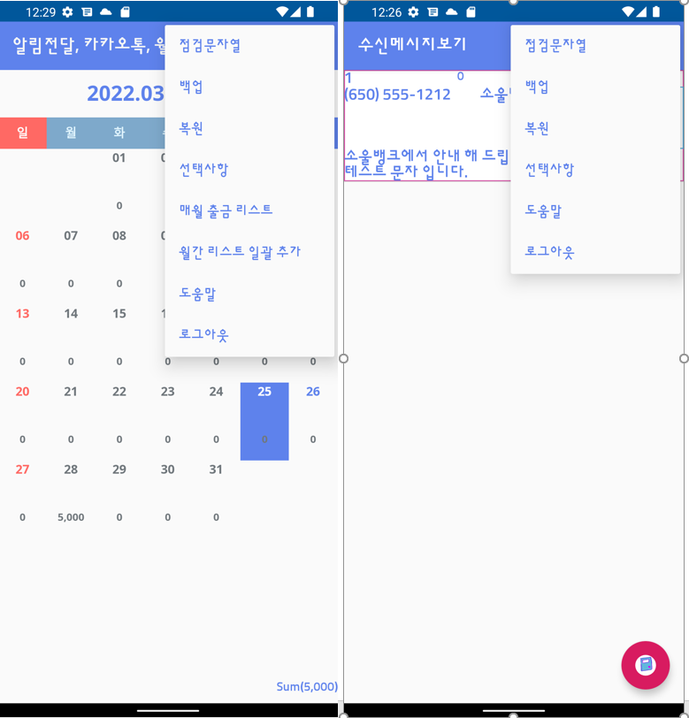 기존에 있던 메인 화면은 새로 추가된 "수신메시지보기" 메뉴로 이동 했습니다.