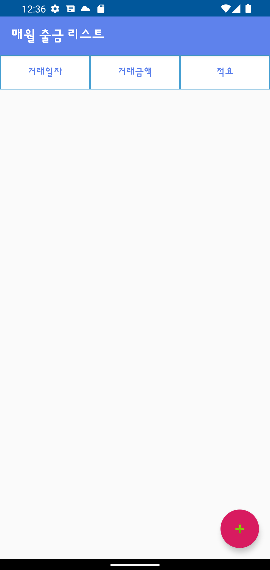 리스트가 나오고 아래 "+" 버튼을 클릭 하면 매월 출금 리스트를 추가할 수 있습니다.