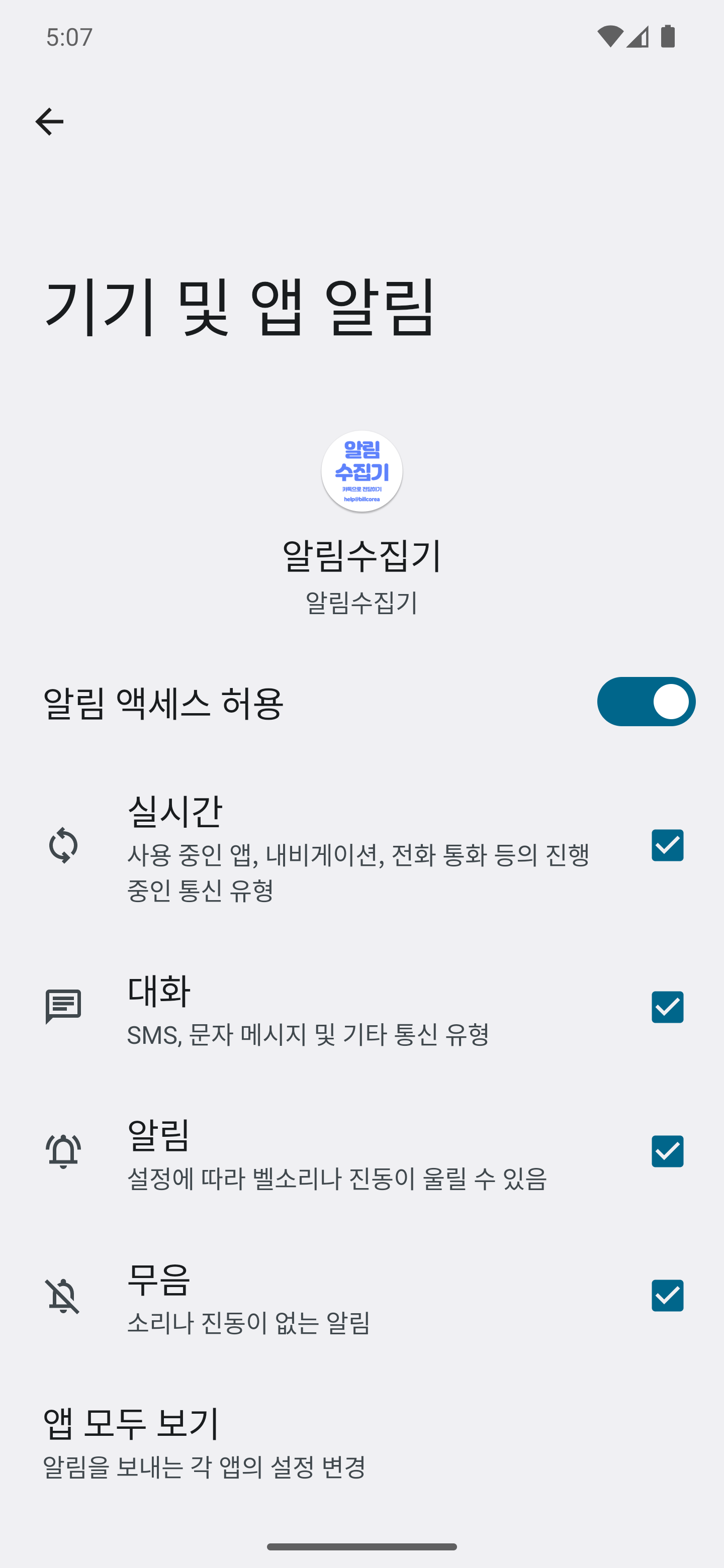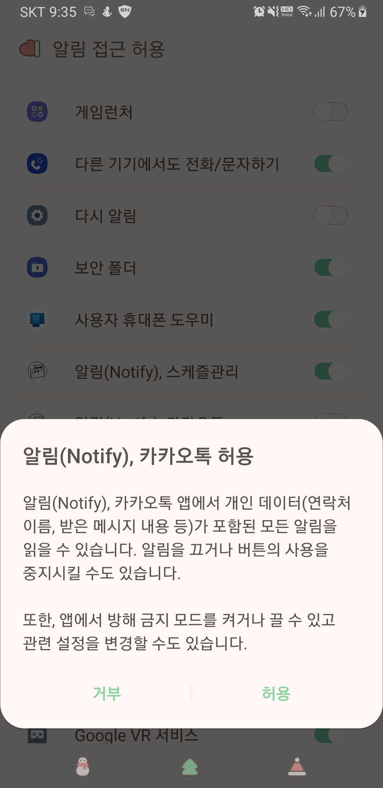 2. 설치를 시작하면 제일 먼저 스마트폰의 설정에서 알림 접근 허용 권한을 허용해 주어야 합니다.