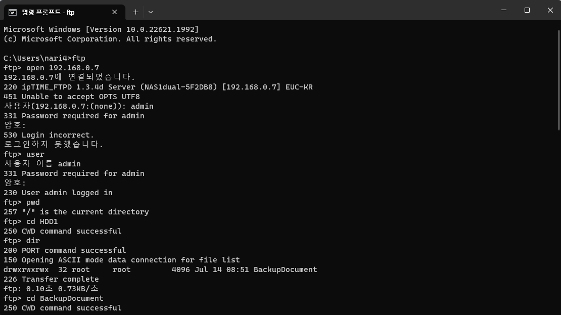 ftp을 실행하고