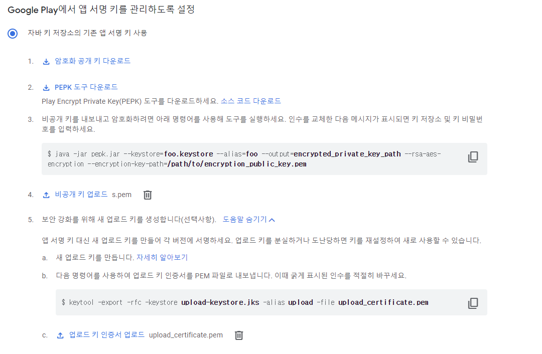 앱의 upload key을 분실했거나, 앱 서명에 문제가 있는 경우 그 조치는 위 설명에 따라 인증서를 다시 생성하여 올려 줍니다. 그리고 기다립니다. 48시간 동안이나 말입니다. (playstore 의 메뉴 중에서 앱 서명에 들어가시면 보실 수 있습니다. 다만, 개발자 계정의 관리자만 할 수 있습니다. 관리자에게서 권한을 위임 받아도 앱 서명 관리는 수정할 수 없습니다.)