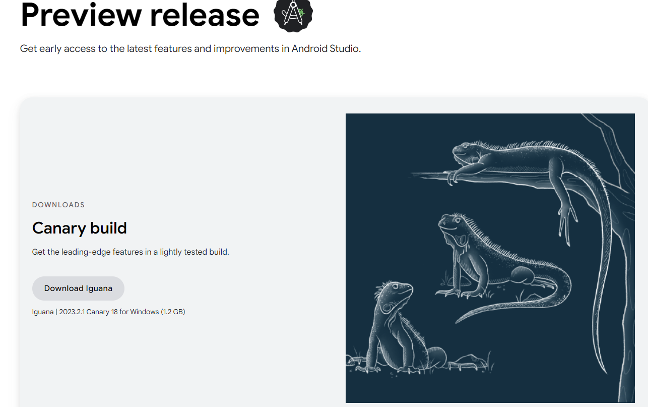 이번에 보고자 하는 개발툴의 버전은 카나리(canary) 버전 입니다. 아직 statable 하지 않아서 간혹 tool 자체가 오류를 만들어 내기도 합니다. 최신 기능을 사용해 보고자 한다면 이 버전을 받아 설치를 해 보는 것도 나쁘지 않아 보입니다.