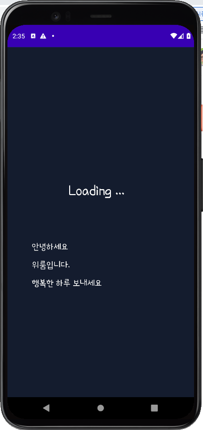 이렇게 MainActivity 을 시작하자 마자 LoadingPage 을 호출하는 것으로 그렇게 하면 사용자는 메인화면위에 올라온 loading 페이지를 잠시 보고 사라지는 것을 보게될 것이다.