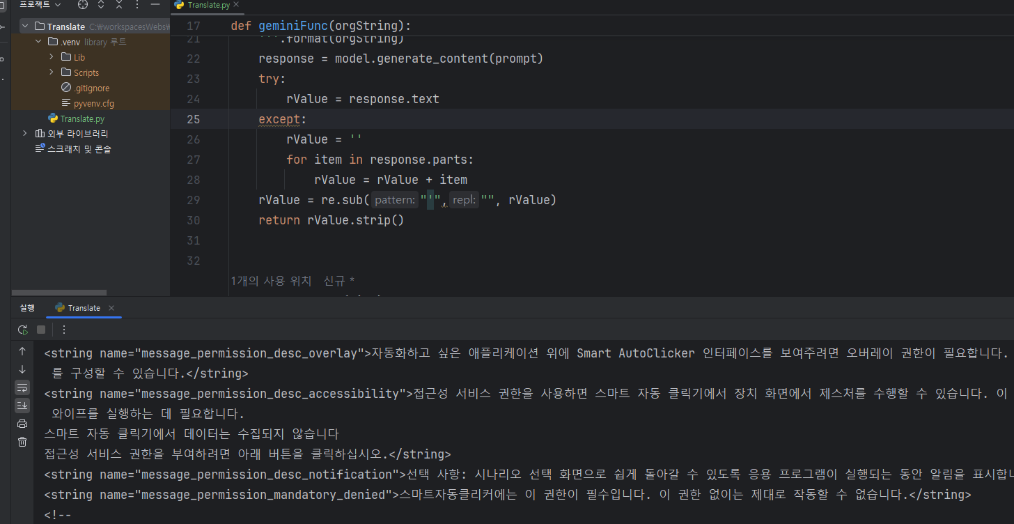 다만, gemini api 을 호출할 때 번역을 조금 자연스럽게 해 달라고 prompt을 만들었더니, 조금은 앱이 이상한(?) 표현을 할 수 도 있습니다.