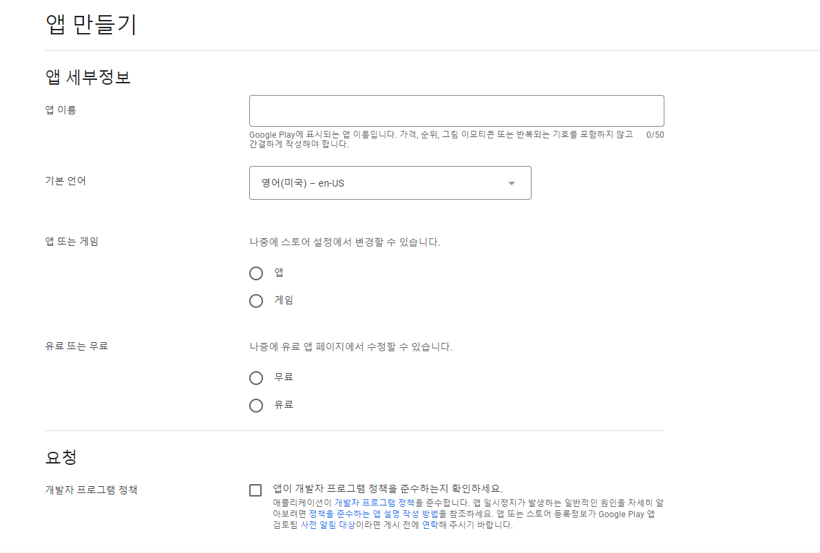 앱을 만들었으니 이번에는 플레이 스토어에 등록을 해 보자 등록을 하려면 먼저 개발자 계정으로 사용자 등록을 진행해야 한다.