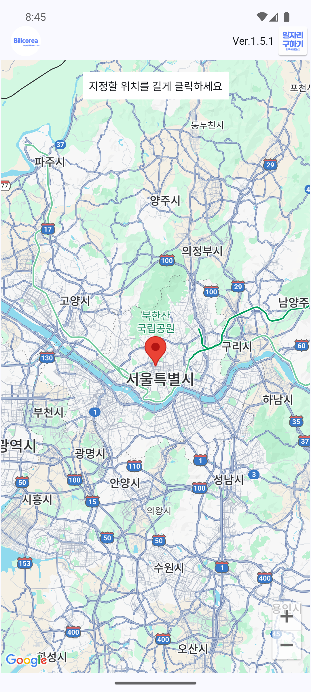 이제 앱을 실행하면 지도가 표시되고, 사용자가 지도를 길게 클릭할 때마다 해당 위치의 좌표가 토스트 메시지로 표시되며, 선택된 위치에 마커가 추가됩니다.