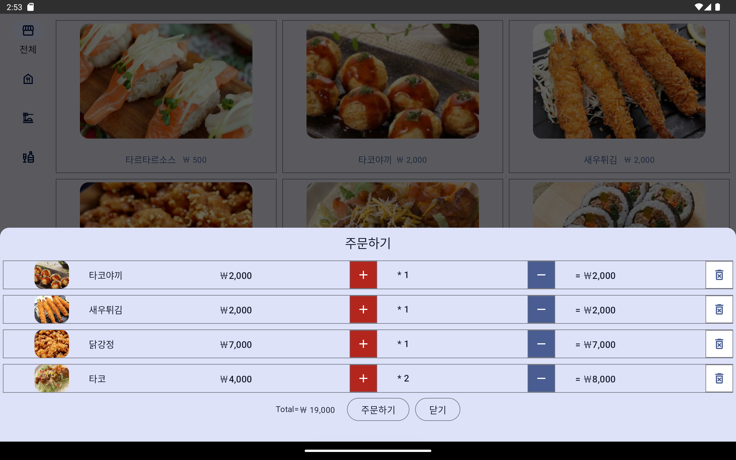 - 닫기 버튼은 주문 목록 화면만 닫기를 하고 메인 화면으로 돌아 갑니다.