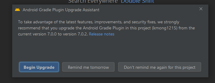 그랬더니... 예전에 만들었던 project 을 열 때 마다 물어 본다. 이 project 을 신뢰할 수 있는 가? 새로운 gradle 로 변환을 하라는 것이다.