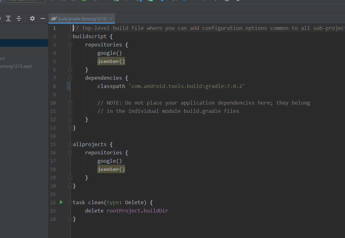 다 끝나고 나서 project gradle 파일을 보면 upgrade가 끝난 것을 볼 수 있다.