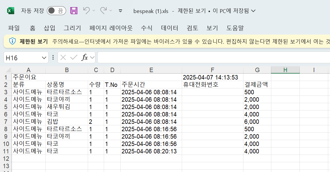D열 메모를 텍스트로 저장 하여 새로운 시트에 정리