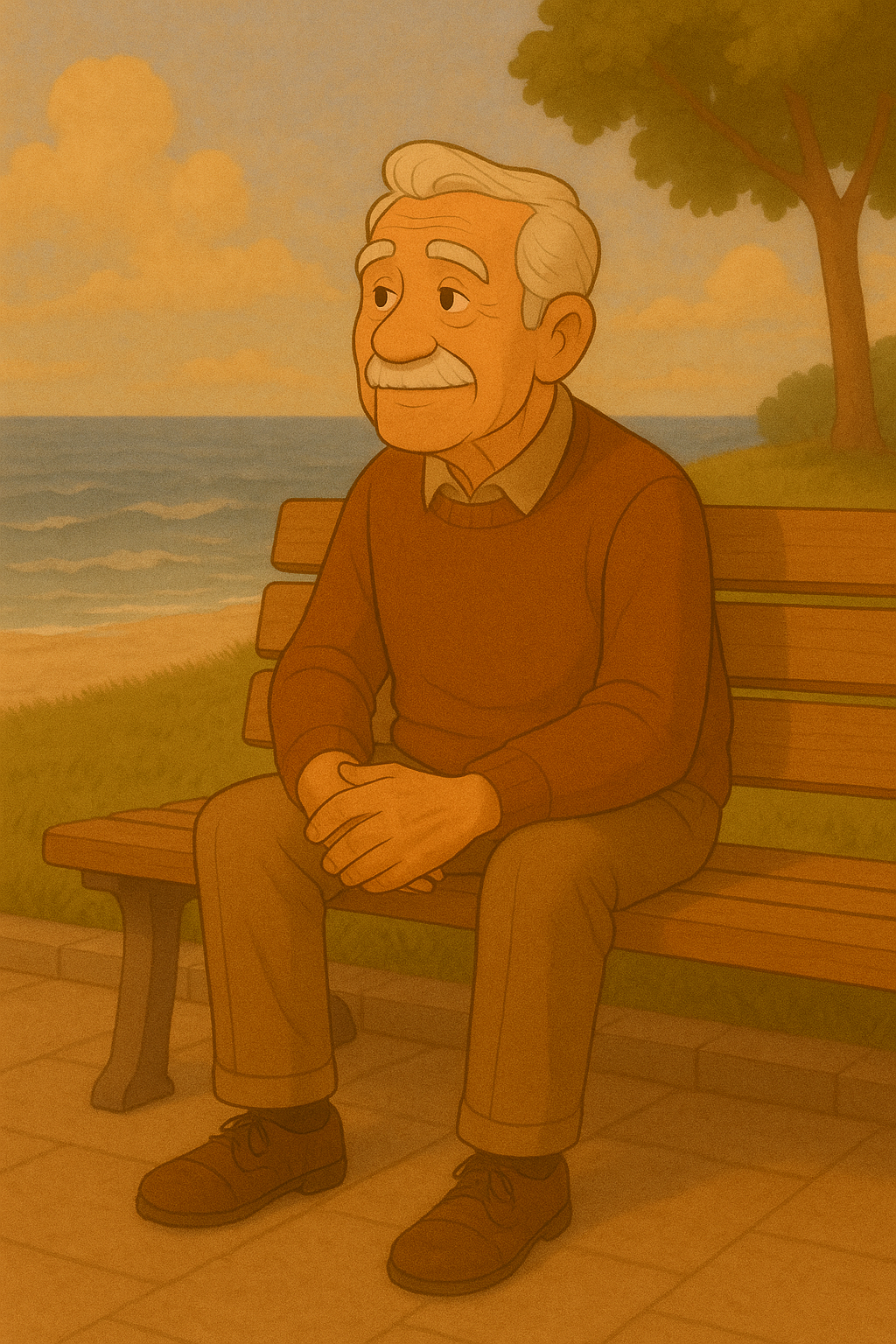 그는 벤치에 앉아 오래도록 앉아 있었다.