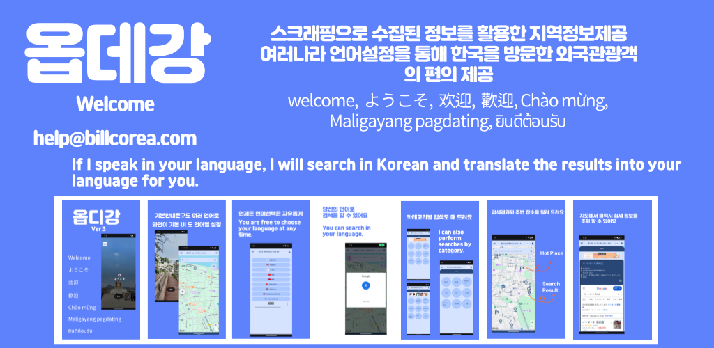 명동 근처에서 프로젝트를 진행하면서, 많은 외국인 관광객들이 휴대폰에 몰두한 채 어디로 가야 할지 헤매는 모습을 보았습니다. 저의 서툰 영어로는 큰 도움을 드릴 수 없었기에, 외국인 여행자들에게 더 나은 서비스를 제공하기 위해 앱을 업그레이드하기로 결심했습니다.