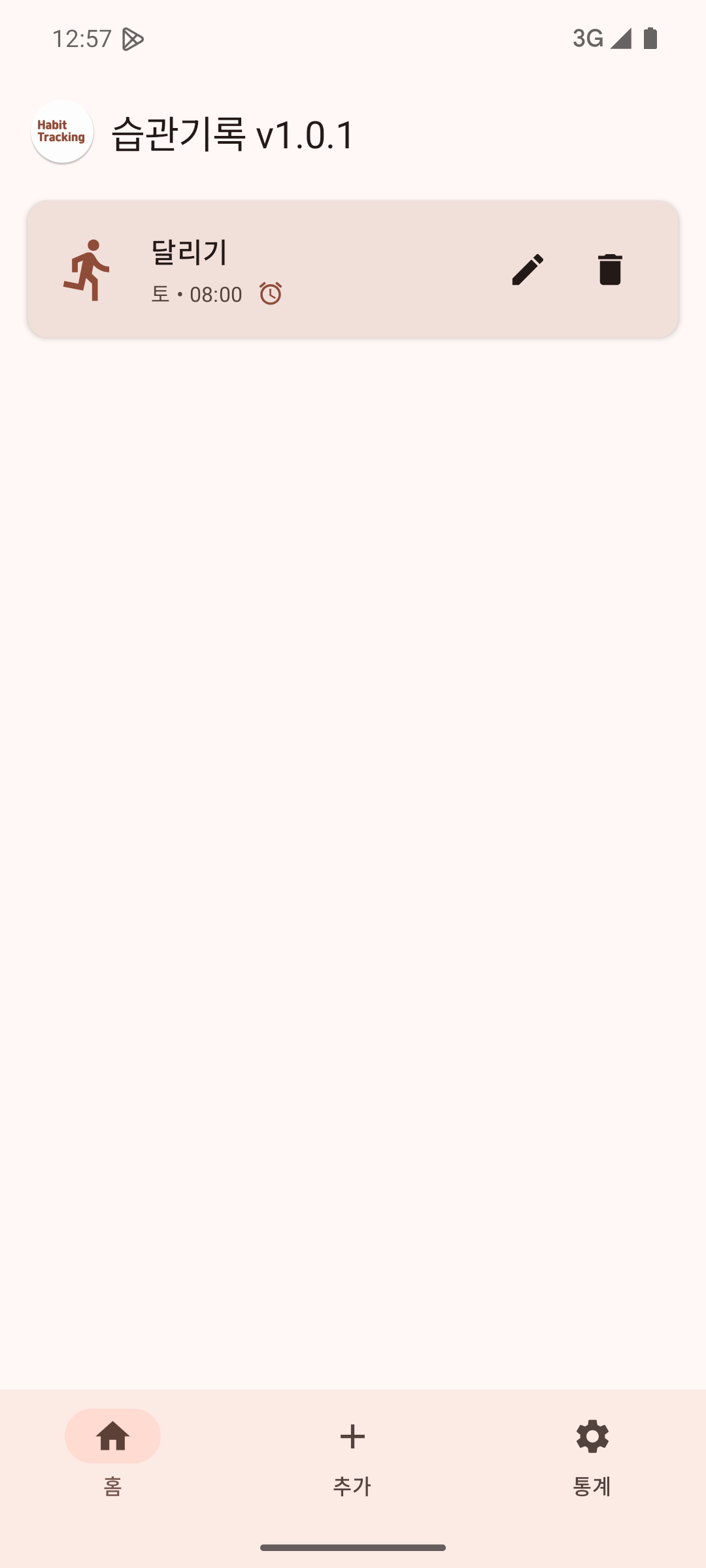 이 화면에서는 추가 메뉴에서 등록된 습관 목록이 나오고, '수정', '삭제' 아이콘을 사용할 수 있습니다. 수정 아이콘을 클릭 하면 선택한 습관 정보를 수정할 수 있습니다.