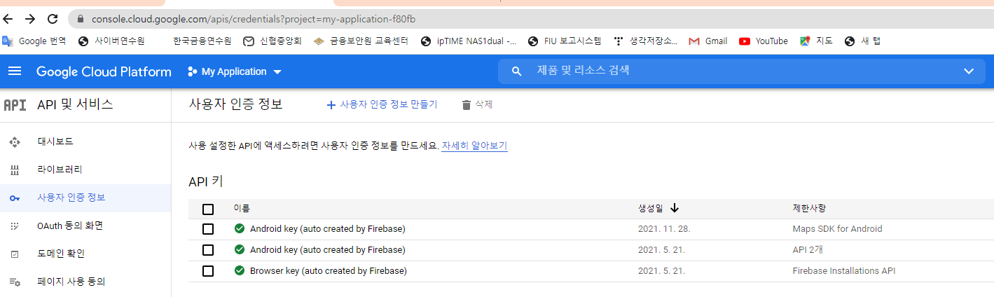이 내용에서 한가지 생각해 볼 것은 android 앱을 만들고 있기 때문에 애플리케이션 제한사항을 선택할 때 꼭 안드로이드를 선택해야만 할 것 같은 생각이 들었던 경험이 있는 데, 그 때는 주의해야할 부분이 인증서 해쉬값을 등록해 줄 때 debug 용 release 용 두개를 각각 설정해 주어야 하고, 그것들을 다 project에 찾아서 설정해 주어야 했던 것 같은 기억이 있다.